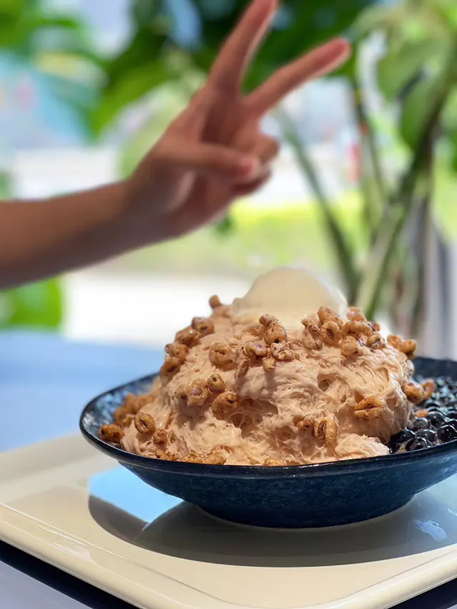 ▼奶茶雪花冰+波霸+香草冰淇淋+甜麥仁