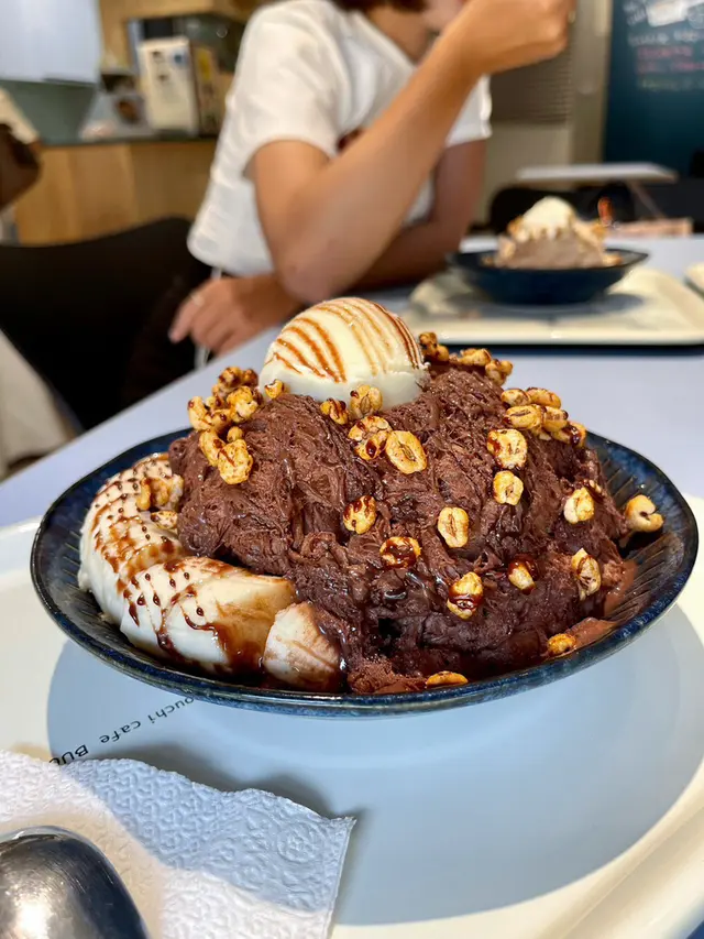 ▼巧克力雪花冰+香蕉+香草冰淇淋+甜麥仁