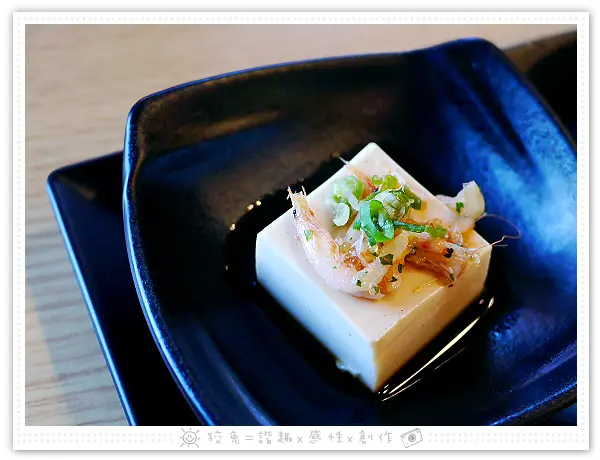 循序漸進品嚐!豆腐的表層鋪上櫻花蝦,佐和風醬油!