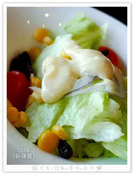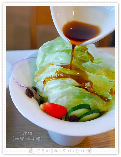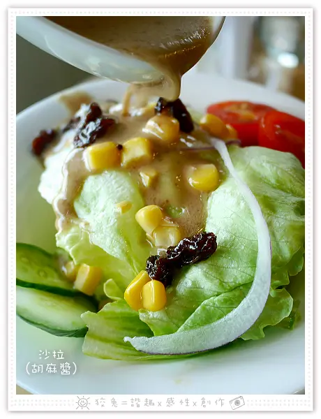 令我更加意外的一點,沙拉附搭的胡麻醬也是偏酸的哩!