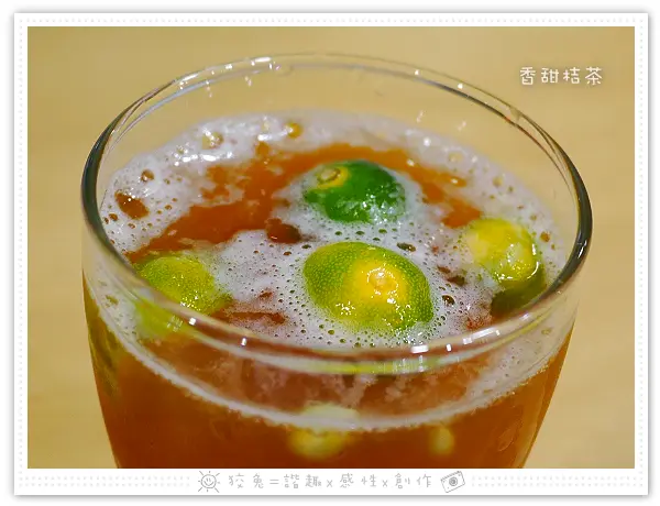 琥珀色的汁液當中,毫不囉嗦擺入四顆桔子!香氣到位!