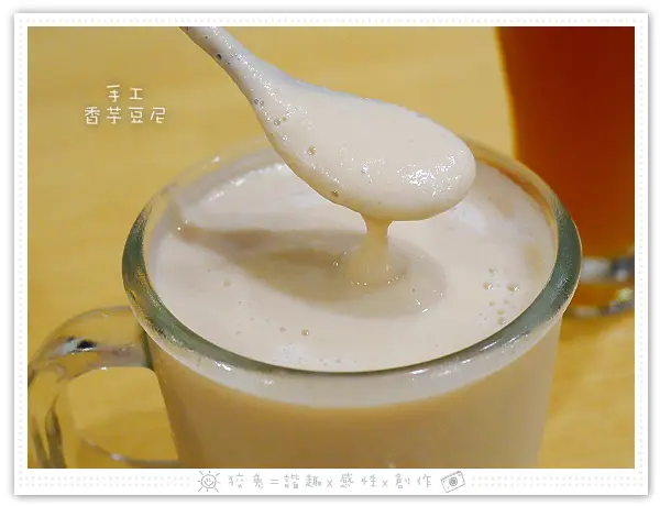 該店特色飲品豆尼!其實就是烹煮、研磨後沒有過濾的黃豆泥!