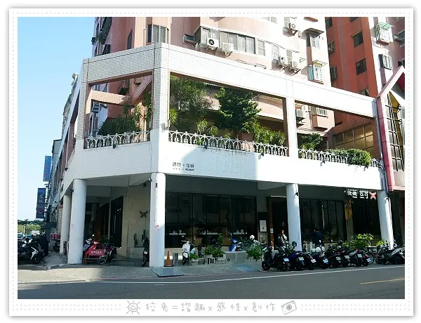 台南東區總店的佔地頗大,白色外觀點綴著綠色植物,看上去相當典雅!我們那天騎機車過來,若開車前往也便利,不遠處就有收費停車場。
