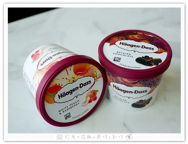 哈根達斯冰淇淋的口味隨機,我們拿到比利時巧克力、白桃覆盆子。