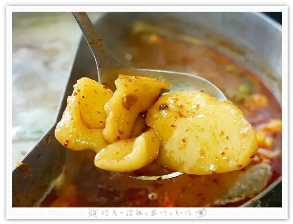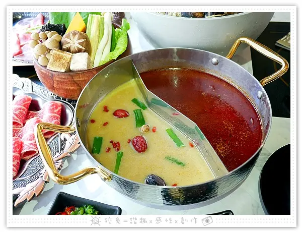 新疆孜然湯底蘊含數十種漢藥材,甘醇味美;秘制麻辣湯底置入不少鴨血、豆腐,使用小燈籠椒、二荊條、子彈頭引出辣度,加以白豆蔻、草果等中藥,熬製後再靜置一週發酵,辣得暢快但不過火,香氣卓越。