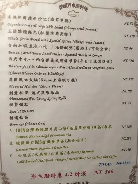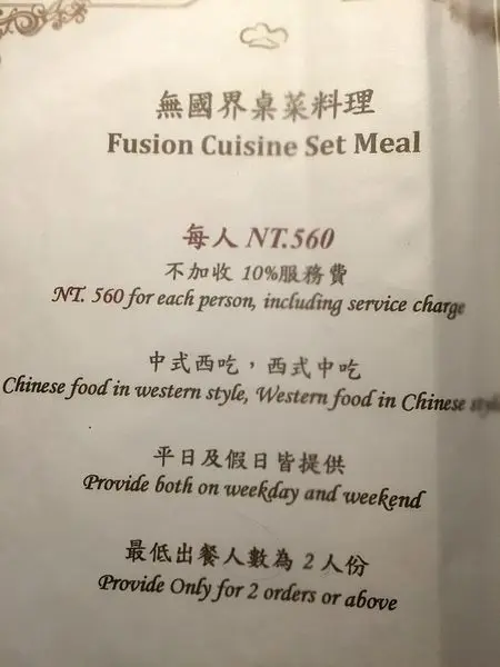 當天選擇的是雙人無國界桌菜料理 $560/人