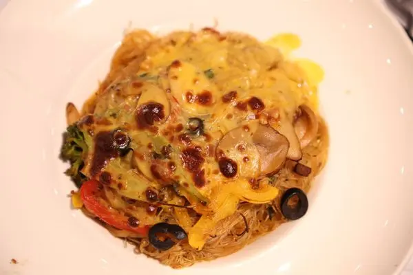 用豆包裡頭鋪滿起司跟素火腿炸的酥脆