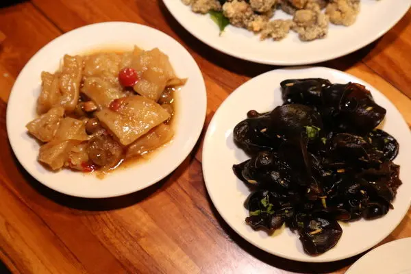 店家招待小菜-蔭豆鼓滷苦瓜 涼拌香菜黑木耳