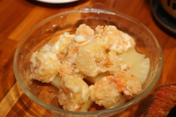沾著甜美的美乃滋 鳳梨罐頭特有的甜香