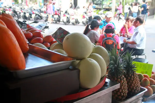 水果攤外面有座位供客人聊天品嘗瓜瓜瓜 ....冰
