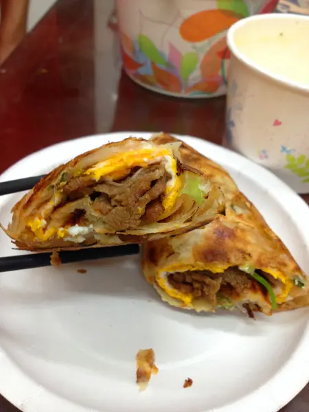 他們家的燒肉捲餅很熱銷的原因 我想就是裡面的關鍵 燒肉 完全顛覆你想像的燒肉 是那種日式醬燒咬下去會噴汁的那種 搭配外皮酥酥脆脆 還有很厲害的半熟蛋 一口咬下保證你會一下子吃完半捲!!!!!!!
