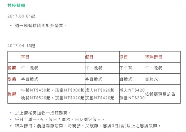 兒童收費:115cm以下免費、115cm~140cm:半自助式/需點一份兒童餐、自助式/$300,140CM以成人計費
