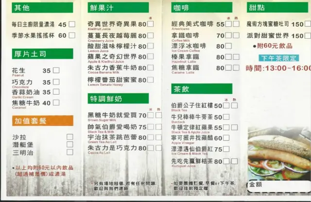 厚片土司/鮮果/咖啡甜點/茶飲