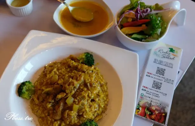 咖哩雞肉燉飯的沙拉份量比較小