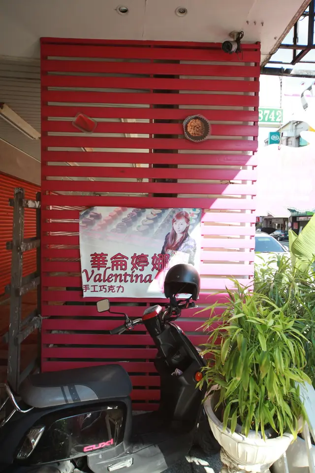 門面裝潢雖然簡單沒有很奢華,大面積桃紅色的色系顯現浪漫的氛圍,Valentine's day為情人節之義,店家就取諧音「 Valentina 華侖婷娜」作為店名,雖然簡單但相當有意境的創意,目前除了崇明店有門市之外,台南新光三越的中山店也有專櫃。