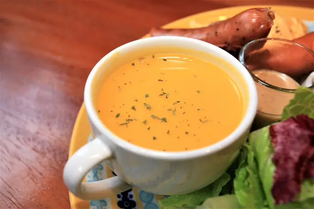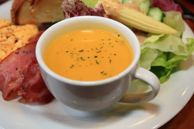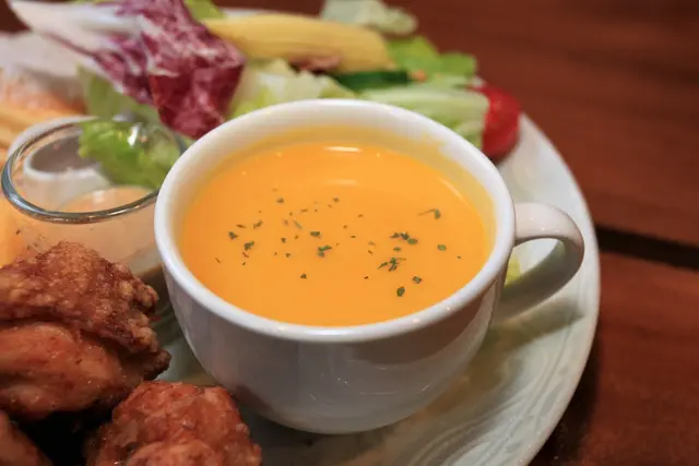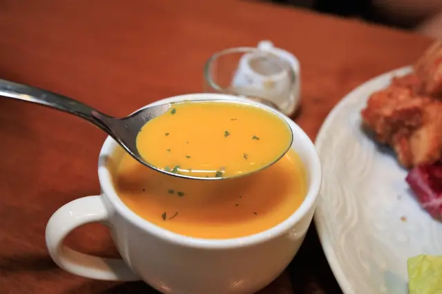 南瓜濃湯色澤是相當濃郁的視覺很吸引人。