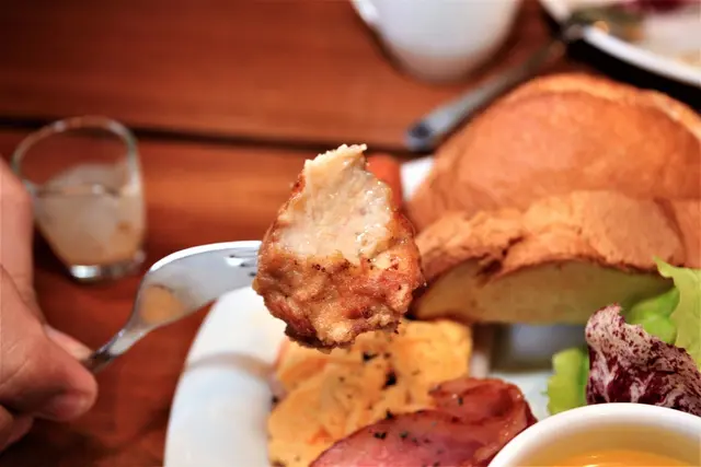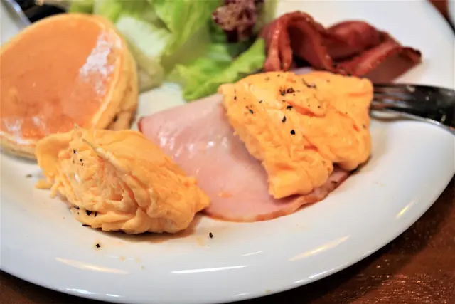 蛋捲下面有塊火腿片很Q彈入味好吃。