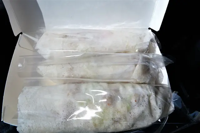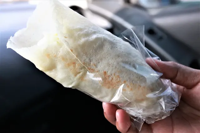 春捲還很貼心用塑膠袋包裝方便食用,看外觀春捲皮有乾煎過呈現微微焦裝。