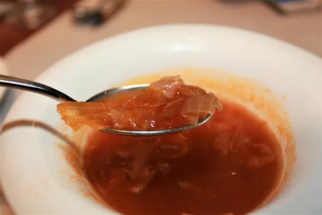 裡面有番茄、洋蔥與紅蘿蔔等食材,蕃茄偏酸甜整體口感還可接受。