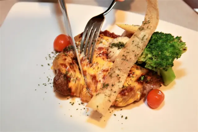 米蘭式焗烤雞腿排擺盤講究又美觀。