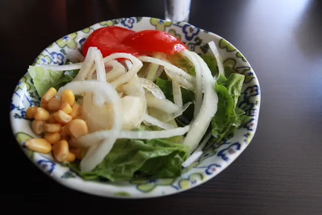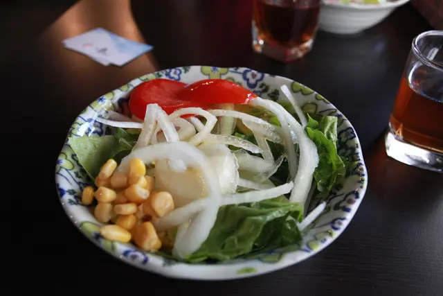 生菜沙拉份量足淋上和風醬還不錯吃。