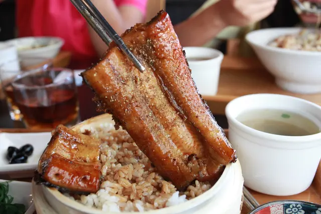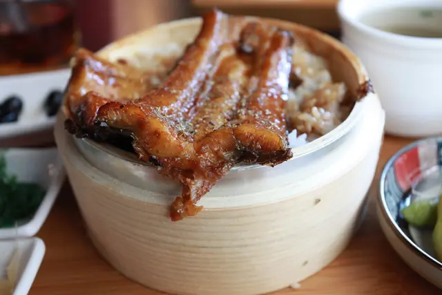 烤鰻魚相當費工經過蒸烤煮還要拔刺才能上桌。