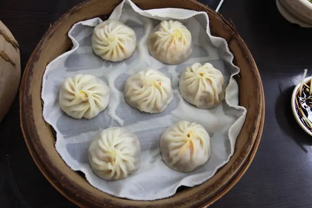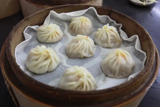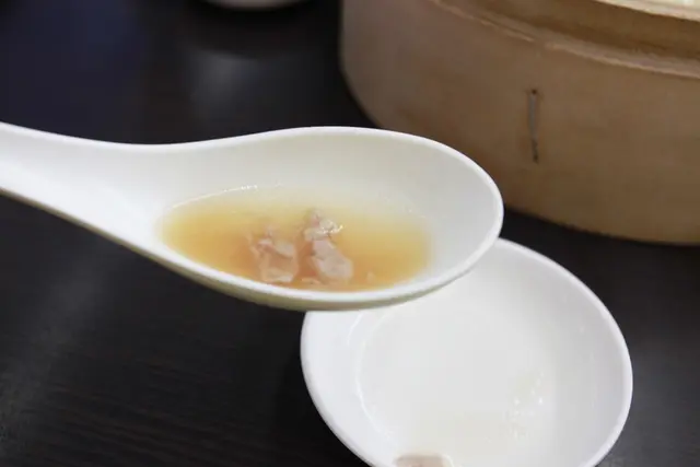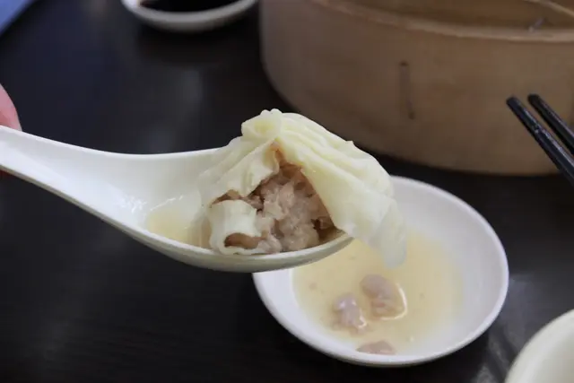 小籠湯包外皮是18摺手工包成的,份量不大單看外觀皮薄且內餡多汁👀。