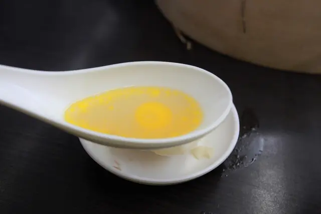 內餡湯汁真多上面還浮一層蟹黃汁好喝💖。