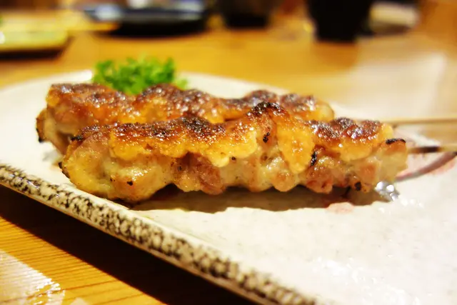 明太子雞腿肉串 雞腿肉的Q彈口感裹上的厚厚明太子醬~肉香混著明太子醬香的口感