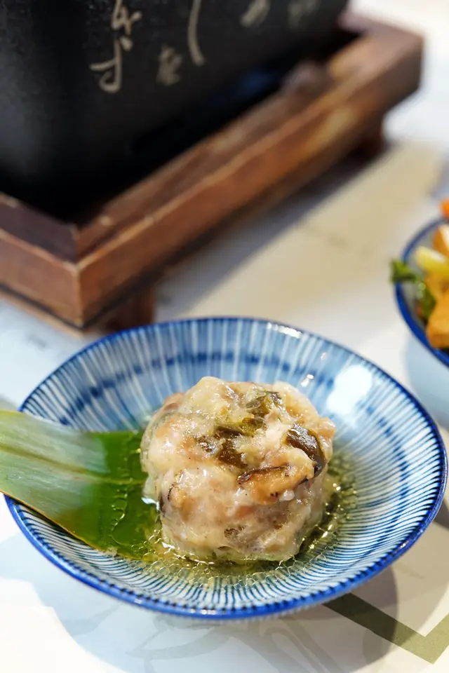 鴨肉剔除骨架,捲入豐富香料,以少油蒸煮方式烹調,最後佐上蜂蜜芥末醬一同享用,是一道製程繁複的手路菜。