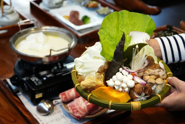 ▼湯頭濃郁醇厚,牛奶的香氣和乳脂香完美融合,涮上新鮮牛肉片和豐富的菜盤,滿足度極高!