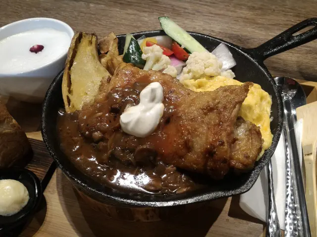 鐵板上的雞腿...蛋...地瓜...都好吃...
