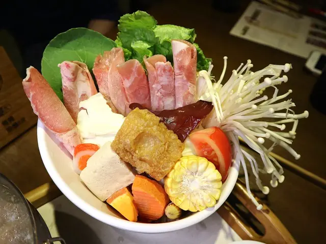 ▼《綜合菜肉盤》裡面除了你挑選的肉品外,還有各種蔬菜(高麗菜、金針菇、木耳、玉米、番茄、蘿蔔、玉米筍…等)、少數餃丸類~