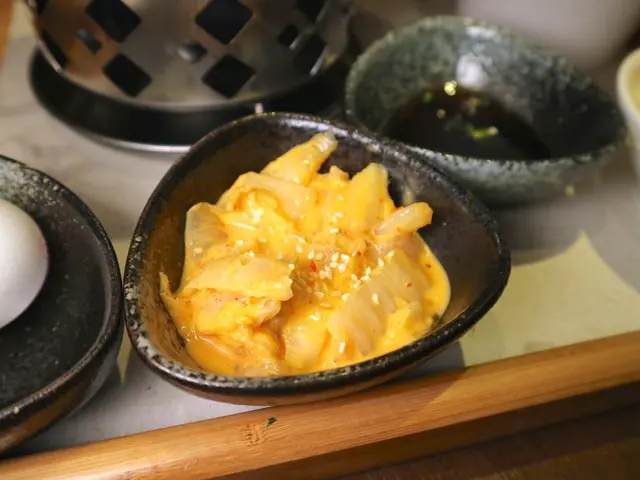 ▼火鍋還附上小菜一碟:今日吃到的是《黃金泡菜》,香濃的泡菜滋味帶著酸甜和腐乳的醇厚,帶些微微辛辣味,很下飯呢!