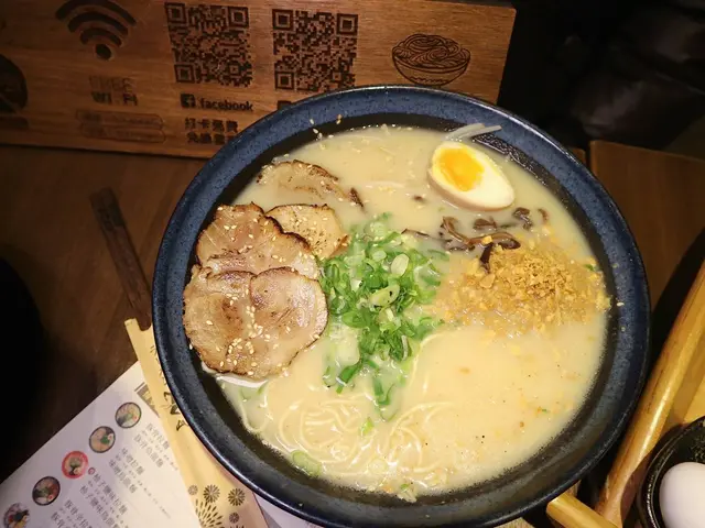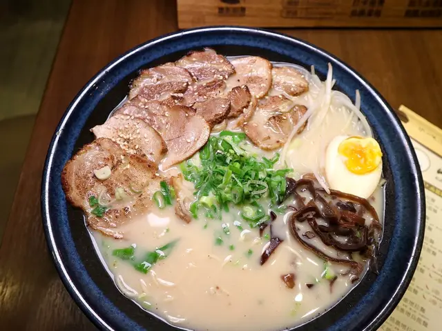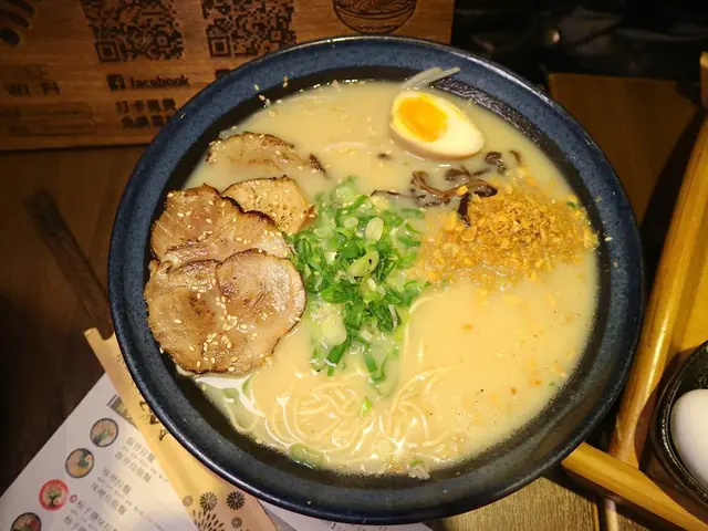 豚骨拉麵的配料,同樣有:叉燒、黑木耳絲、蔥花、半熟蛋、豆芽菜、九州拉麵。