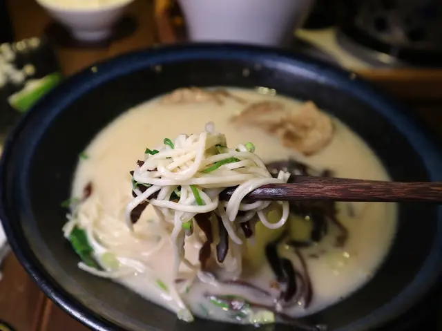 九州拉麵,偏細的麵條,口感較帶勁彈,我個人覺得細麵比較能吸附湯頭,吃起來比較有味道!