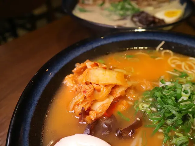 《泡菜拉麵》則是配料多了一大份韓國泡菜,讓整體湯頭多了酸甜滋味,帶還些微辣感,很開胃誒~