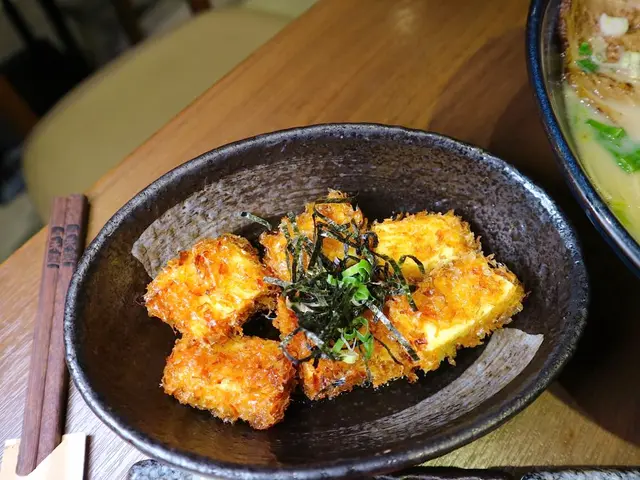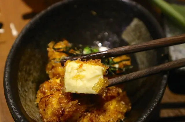 細緻的酥脆外皮,裡頭的雞蛋豆腐非常滑嫩,搭配和風醬汁,真的很涮嘴!