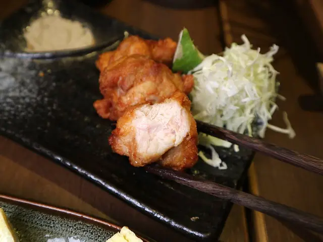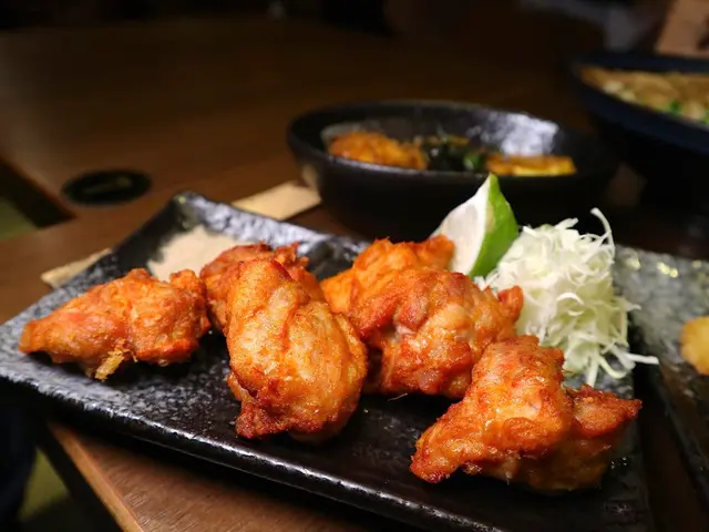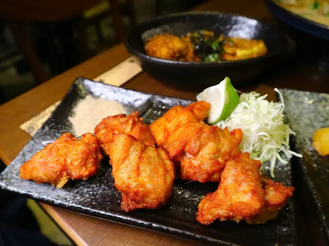 金黃色澤的 《雞唐揚》,外皮是微微的酥,使用無骨雞腿肉,吃起來格外的啾西多汁!