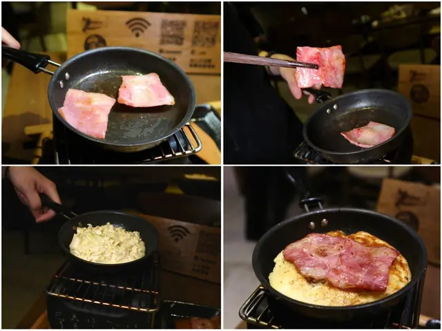 他搭配了《黃金泡菜》和《熱沙拉》,泡菜酸甜微辣、有開胃,滿合理的!不過,另一道《熱沙拉》…滿有創意的!
