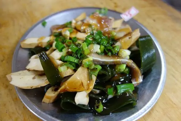 豆干.豬耳朵和海帶 25元~淋上醬油膏和蔥花
