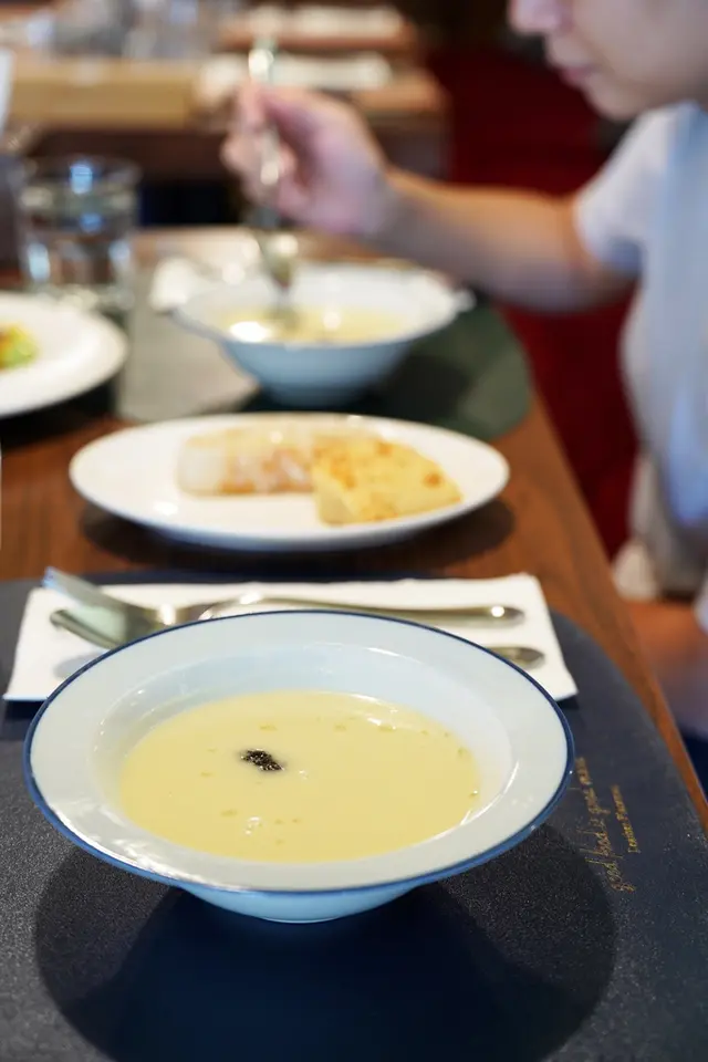 ▼皇帝豆松露濃湯,濃郁的松露香氣與綿滑的皇帝豆泥交融,加入非常鮮嫩的雞胸肉,更增添了口感的豐富度。