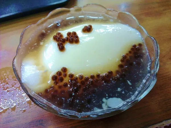 我點的是傳統白豆花 $30配料是珍珠和檸檬檸檬汁取代了糖水 除了原有的甜味外還多了酸味在 吃多也不容易膩這家珍珠是用小珍珠 每口除了豆花外還有珍珠Q彈的口感在最後是豆花 雖然本身沒什麼味道但加上檸檬和糖水後