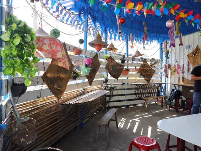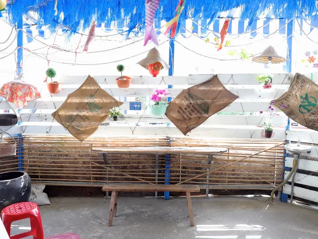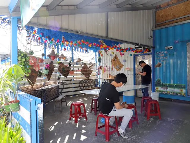 藍色鐵皮屋頂、綠色招牌掛布,很吸睛~