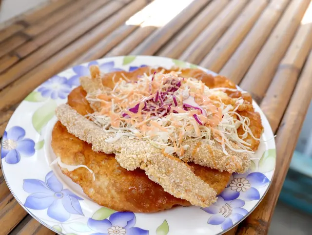 我反而覺得 有點像在吃 虱目魚條沙拉,而酥脆的餅皮 則是沙拉的容器