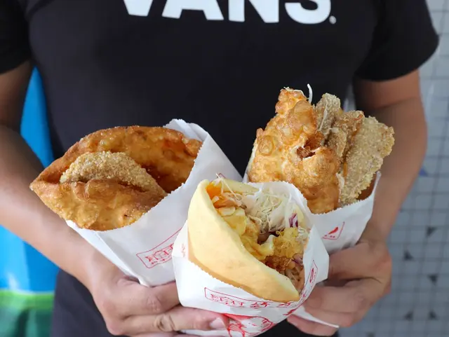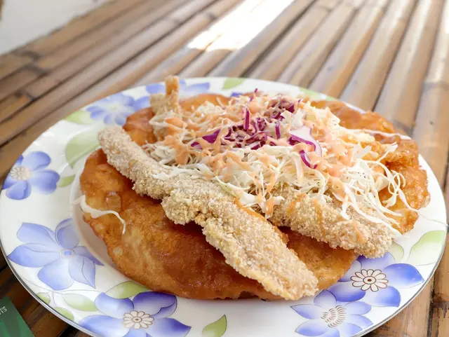 將蔥油餅,結合了 雞排 或魚排,讓簡單的下午茶 變身為澎湃的一餐,吃一份雞排蔥油餅,那飽足感可是讓你抵一餐!!!
