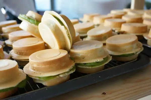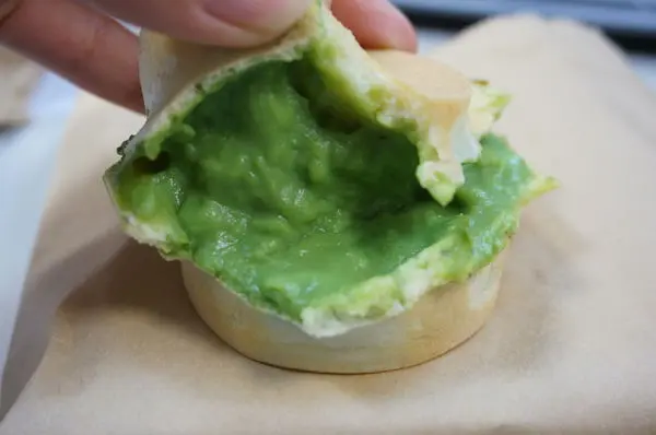 掰開餅皮裡面填滿綠油油抹茶醬私毫沒留一絲空隙阿
