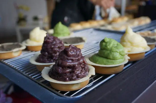 紅豆,奶油,抹茶口味的餡料擠成霜淇淋高度(大概繞個至少五圈吧!!!!!)