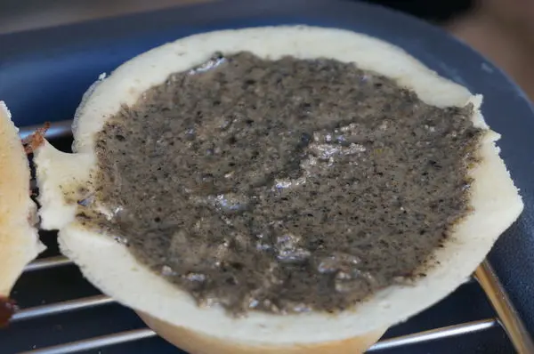 蓋上另一邊餅皮後餡料依舊露臉