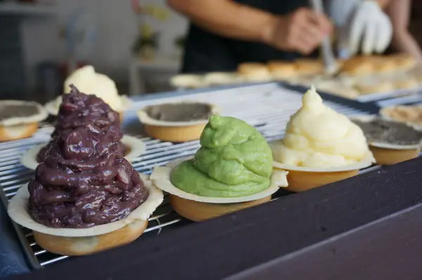 老闆把抹茶粉拌入卡士達醬就得到了很明亮的漂亮綠色啦(讓阿豬想起了小時後的水彩課)
